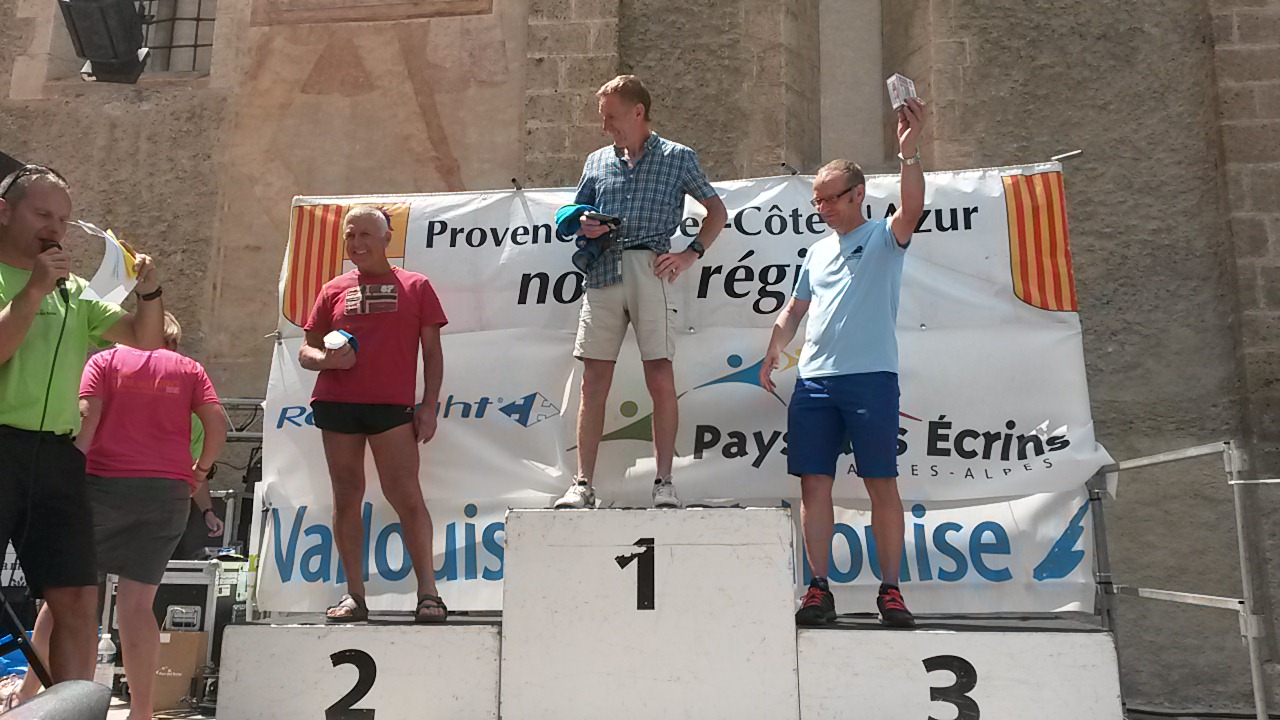 - ce samedi 20 : retour à notre région mais encore en frontière avec la précédente: c’est le Grand trail des Ecrins qui a vu la participation de Michaël Sarrato sur le 44 km qu’il termine 17ème Sénior en 5h45 et aussi celle de notre Michel Périer, en grande forme dans les 23km du Fournel, s’octroyant le meilleur chrono des V3! Bravo à toi Michel, bravo à tous les deux, belle photo du podium en fin de l’article.